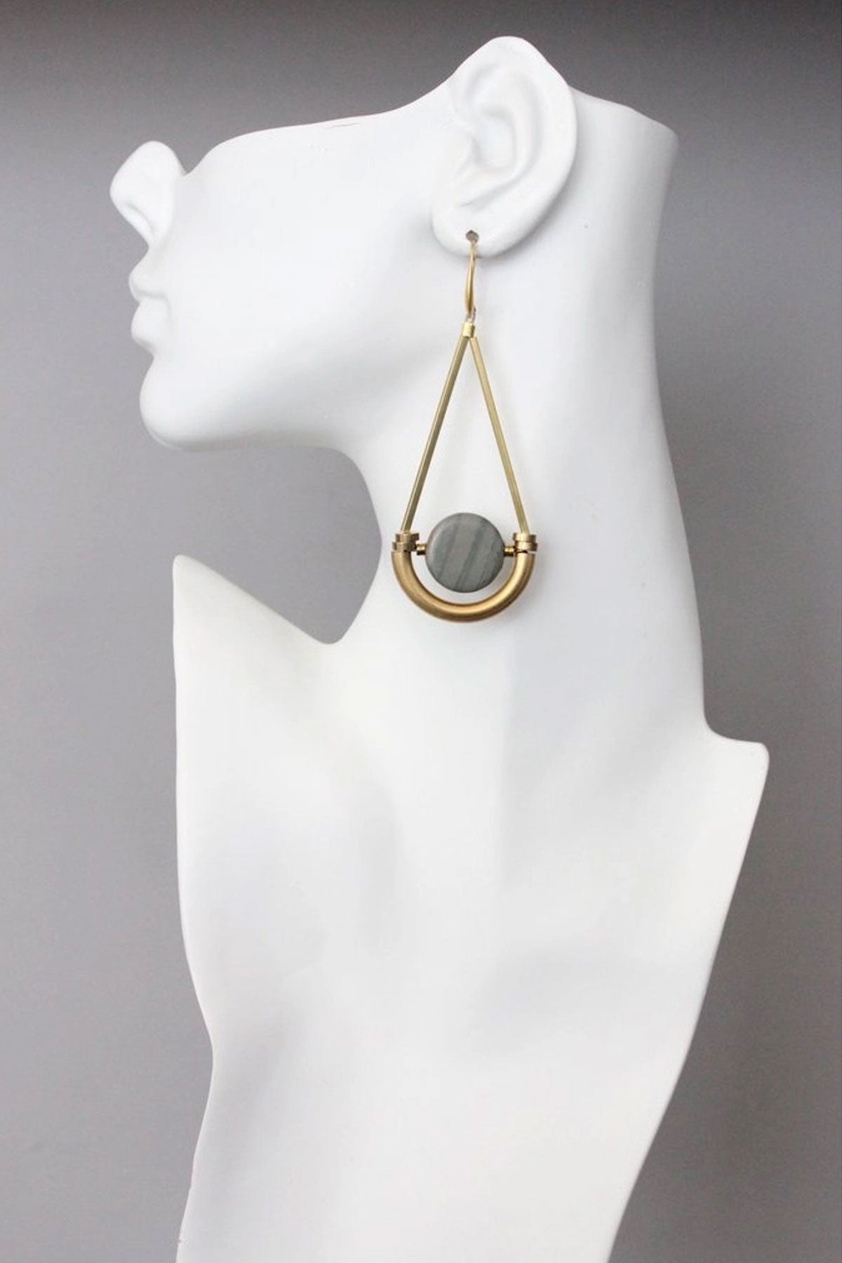 Beautiful yet versatile statement earrings! These handcrafted earrings features a jasper stone with an 18k gold plated brass hook in an a brass frame.