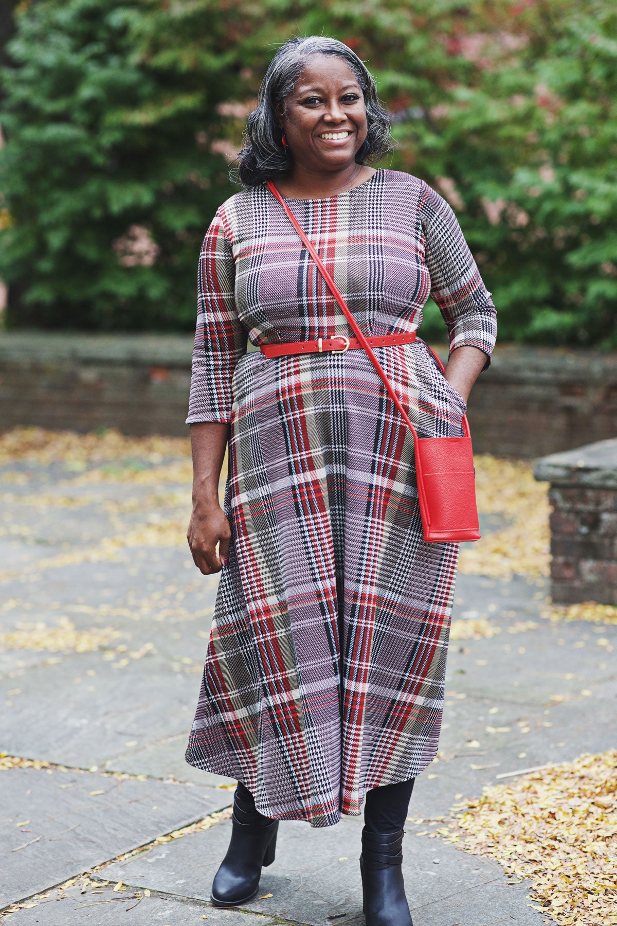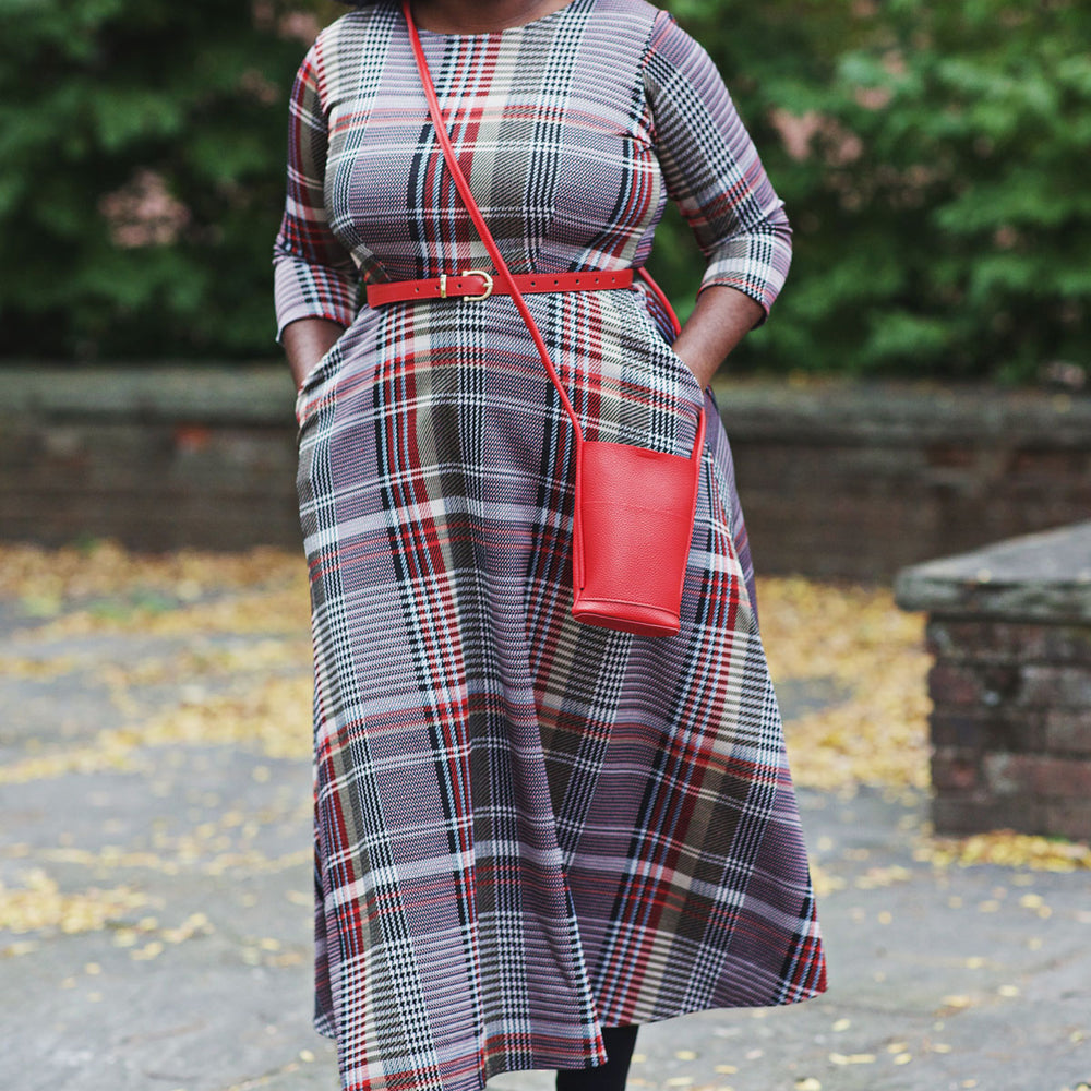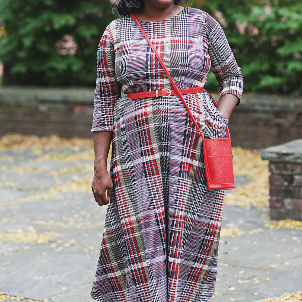 Our Katherine Dress is made with comfort and style in mind. Featuring a scoop neckline, 3/4 sleeves, and midi length skirt, this dress keeps you chic with ease. Plus, it's made from wrinkle-free fabric (polyester/spandex) that's machine washable and proudly made in the U.S.A. The best part? POCKETS! So you can look and feel great all day.