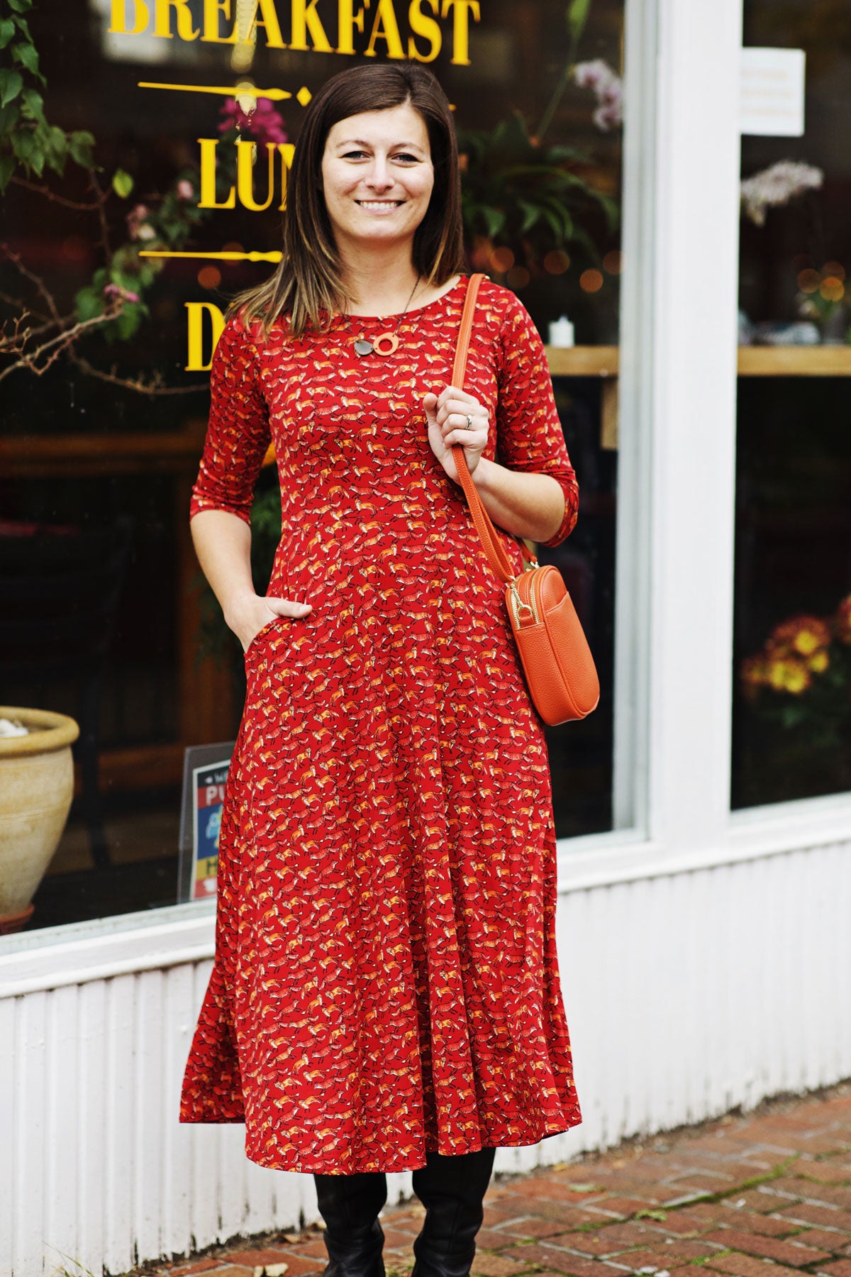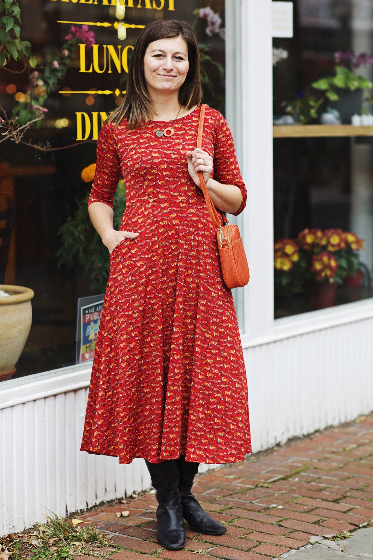 Our Katherine Dress is made with comfort and style in mind. Featuring a scoop neckline, 3/4 sleeves, and midi length skirt, this dress keeps you chic with ease. Plus, it's made from wrinkle-free fabric (polyester/spandex) that's machine washable and proudly made in the U.S.A. The best part? POCKETS! So you can look and feel great all day.