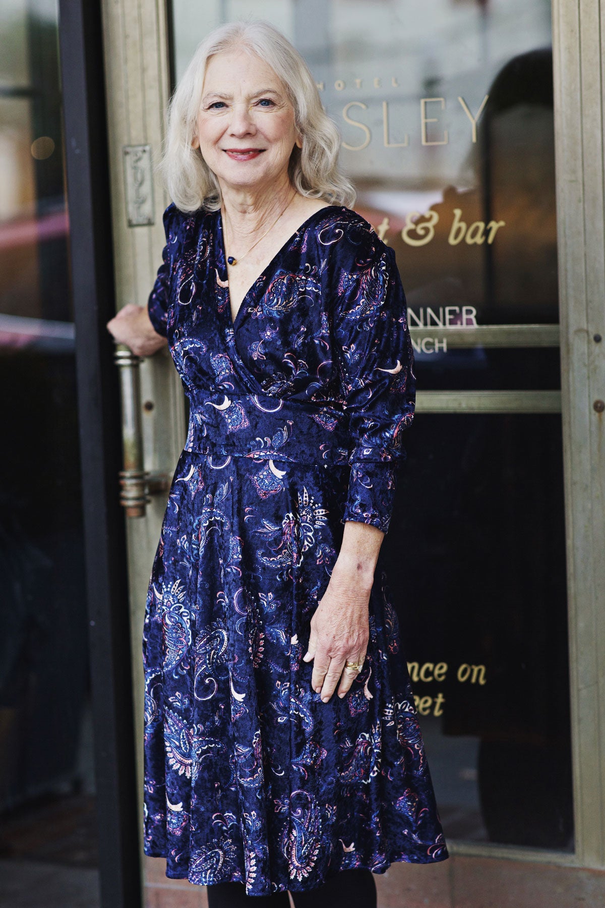 Transform any outing into an event with this must-have 3/4 sleeve beauty, boasting a cross-over V neck, waistband below the bust, and a knee-length, full skirt that's wrinkle-proof and machine washable. Feeling good starts with looking good; proudly made in the U.S.A.!